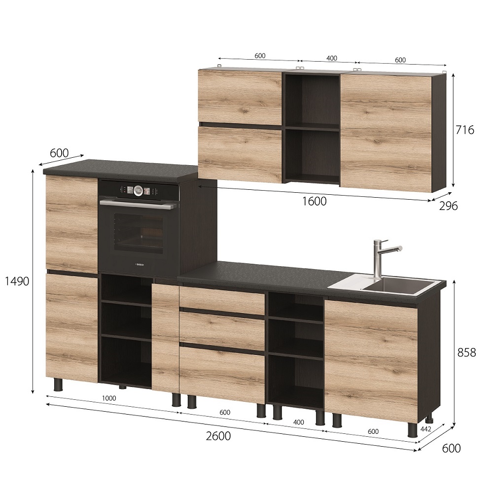 Ширина, мм 2600 Глубина, мм 600 Высота, мм 2164 ?МатериалМатериал изготовленияЛДСП Производитель Вариантов исполнения 1 -