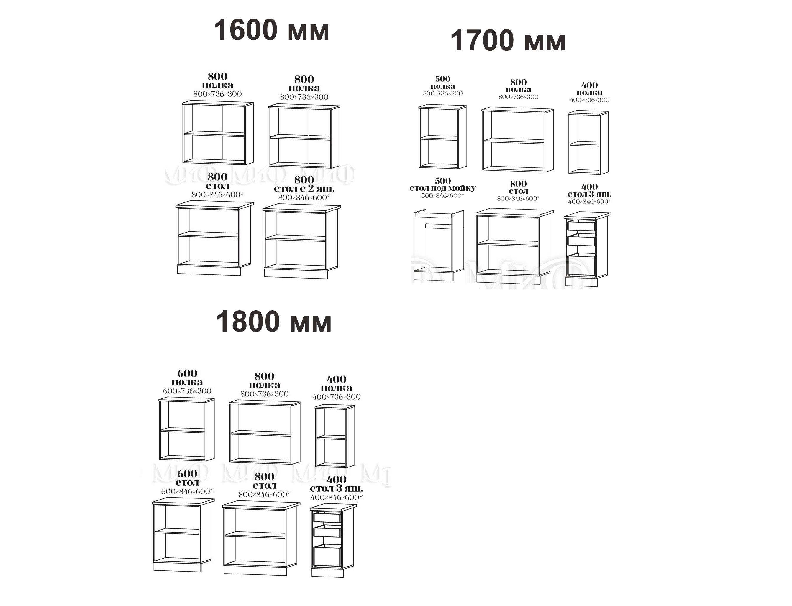 Ширина, мм 1700, 1800, 2000, 1600 Глубина, мм 600 Высота, мм 2224 ?МатериалМатериал изготовленияЛДСП, МДФ Производитель Вариантов исполнения 1 -