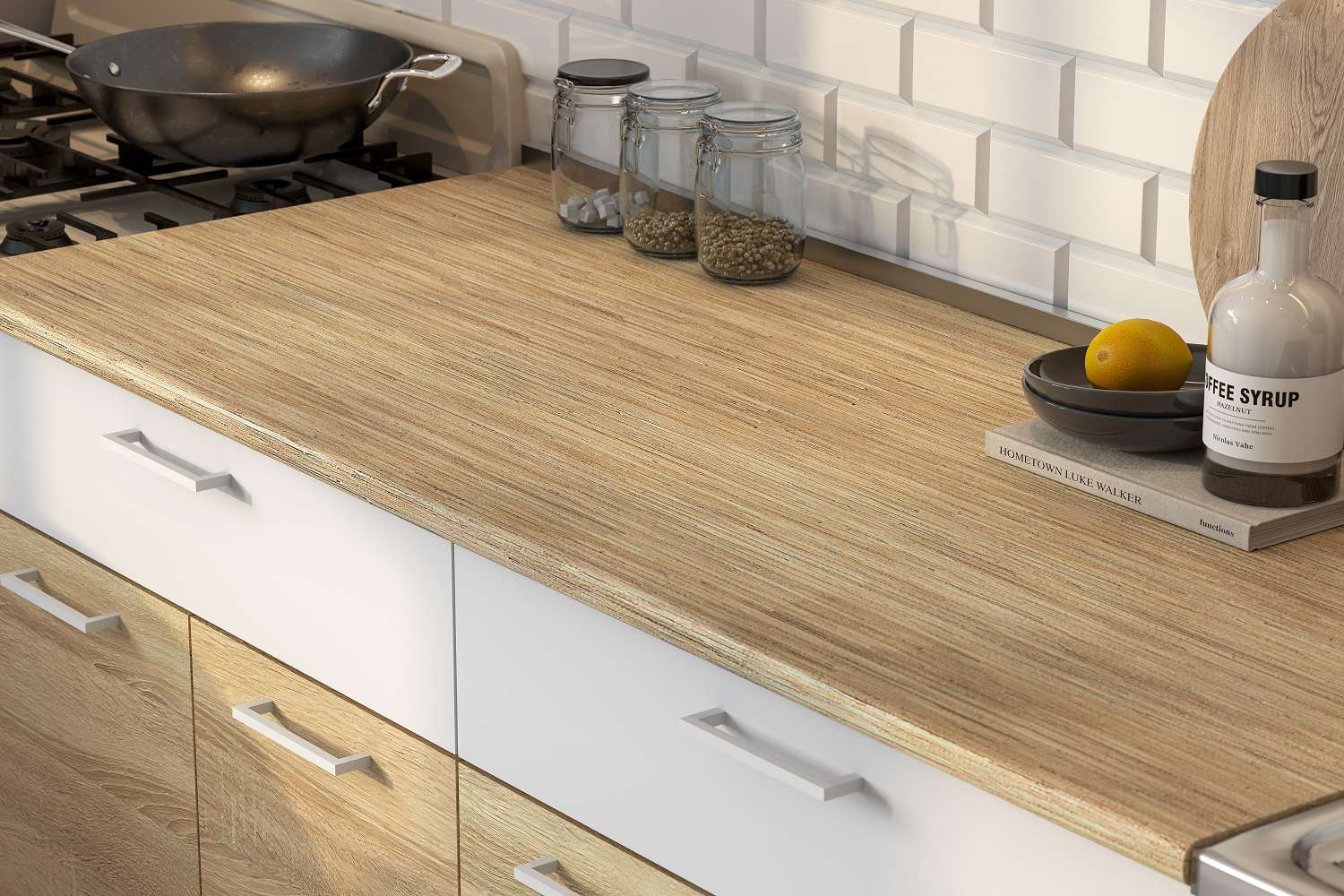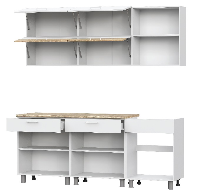 В кухонный комплект входит столешница в декоре "тростник", изготовленная из ДСП и покрытая слоистым пластиком. Кромка из первичного АБС пластика 0,4 мм по боковым и задним торцам предотвращает возможность разбухания и появления плесени в агрессивной влажной среде. Столешница выдерживает большую нагрузку, устойчива к ударам, воздействию бытовой химии и влаги, сохраняет цвет даже при интенсивной эксплуатации.
