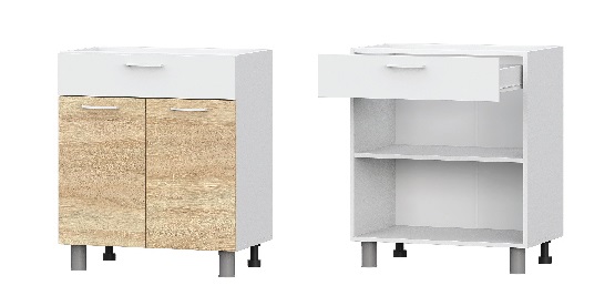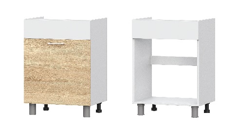 модуль под накладную мойку с распашной створкой. в этом модуле отсутствует полка и задняя стенка для удобства монтажа сантехники (Ш600хГ500хВ820 мм)