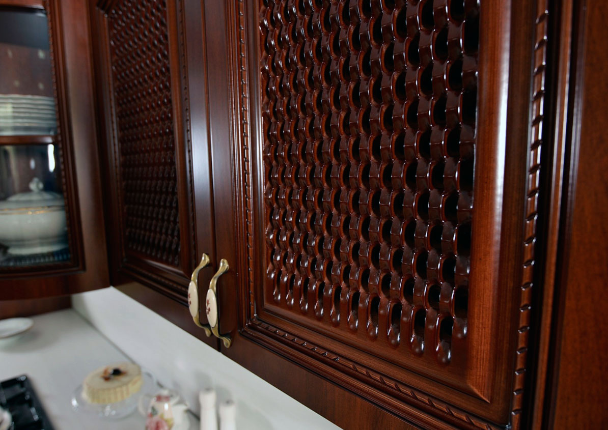 Декоративные элементы, фасады, накладки покрыты темной патиной и матовым лаком