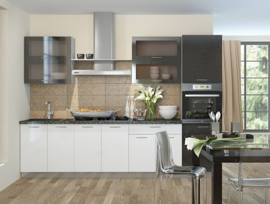 Кухня Базис 22 поможет обустроить необычайно удобную кухню, где вы будете с удовольствием готовить разнообразные вкусные блюда. Большое количество тумб и ящиков пригодятся для размещения и хранения посуды, кухонной утвари, столовых приборов, различных круп, макарон и других сухих продуктов. Яркая, минималистическая стилистика кухни Базис подойдет жителям мегаполиса, которые ценят свое время и готовы пожертвовать пышным декором в пользу комфорта.