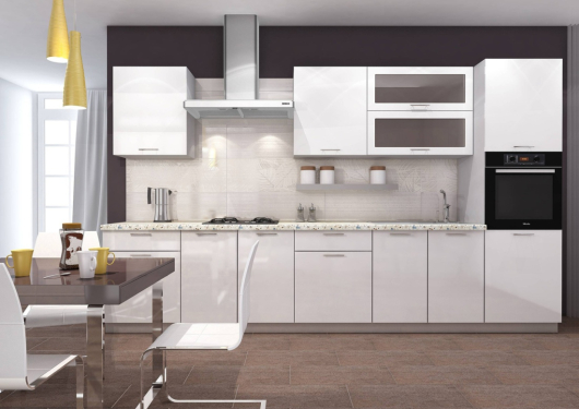Кухня Базис 26 поможет обустроить необычайно удобную кухню, где вы будете с удовольствием готовить разнообразные вкусные блюда. Большое количество тумб и ящиков пригодятся для размещения и хранения посуды, кухонной утвари, столовых приборов, различных круп, макарон и других сухих продуктов. Яркая, минималистическая стилистика кухни Базис подойдет жителям мегаполиса, которые ценят свое время и готовы пожертвовать пышным декором в пользу комфорта.