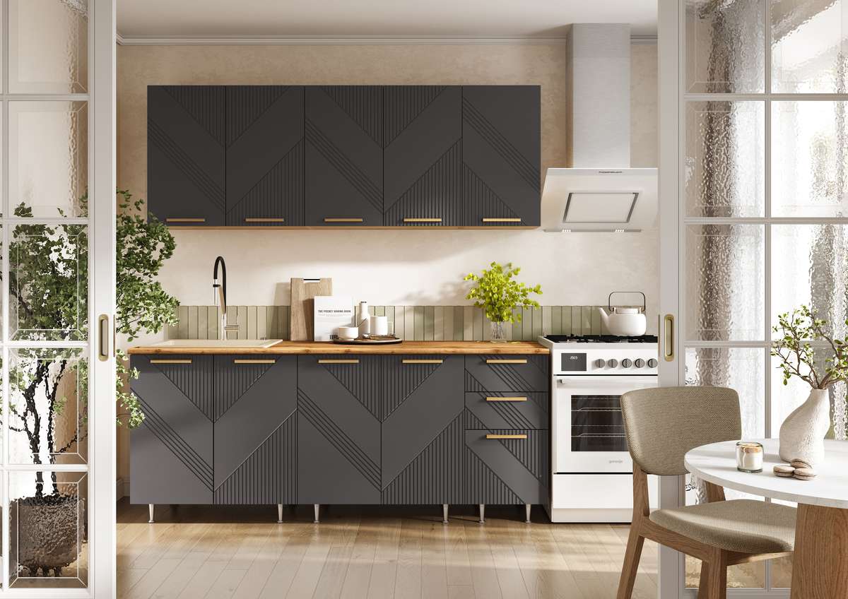 Кухня Ирис 2,0 м - отличный выбор для тех, кто хочет сделать свое маленькое кухонное пространство красивым и функциональным. Рельефные фасады придают кухне особый шарм и оригинальность, подчеркивая её индивидуальный характер. -