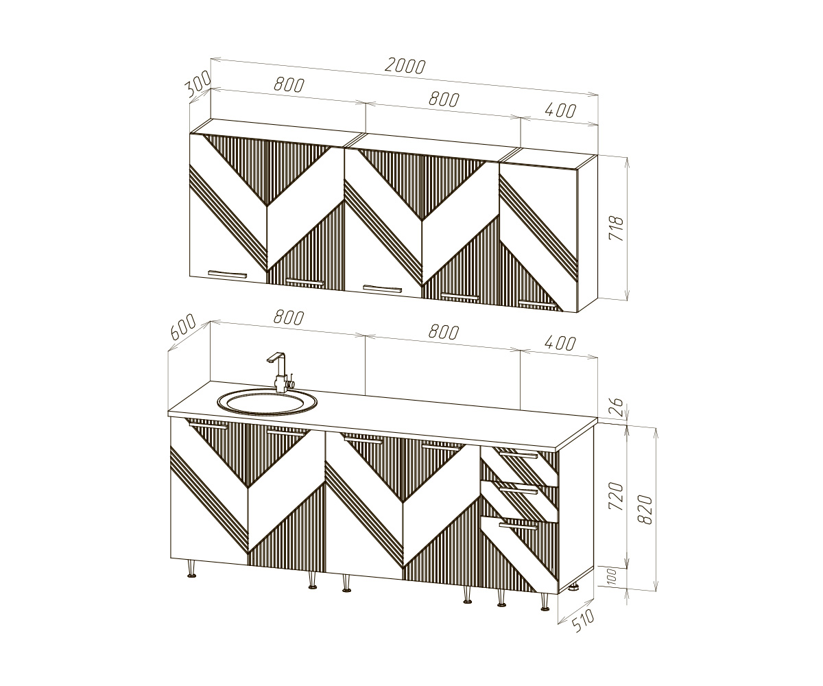 Размеры: Ш2000 х Г510/600 мм