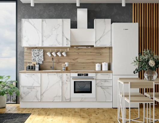 Стильная кухня Элит выполнена в самых современных тенденциях моды кухонной мебели. Фасады выполнены из МДФ. Направляющие роликовые Boyard. Многообразие модулей позволит собрать свой комплект мебели.