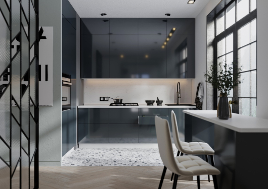Модульная кухня Эстетик сочетает в себе гладкий, матовый или сверхглянцевый фасад. Эта кухня идеально подходит любителям современного стиля. Сочетание матового с глянцем весьма нестандартное и стильное сочетание. Эта линейка прекрасно сочетает в себе благородство прямых линий и изысканные детали.