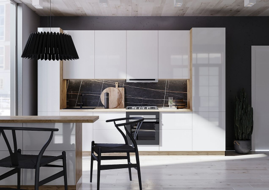 Модульная кухня Эстетик сочетает в себе гладкий, матовый или сверхглянцевый фасад. Эта кухня идеально подходит любителям современного стиля. Сочетание матового с глянцем весьма нестандартное и стильное сочетание. Эта линейка прекрасно сочетает в себе благородство прямых линий и изысканные детали.