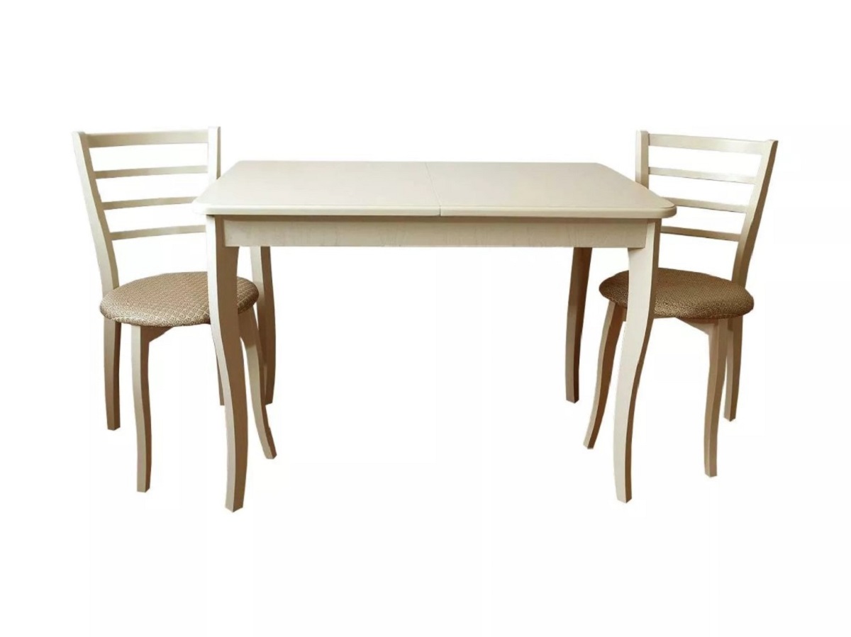 Обеденная группа СО-32/С-31 бежевый - стильный набор мебели, который создаст яркий и комфортный интерьер в столовой или гостиной комнате. Комплект выполнен в стиле модерн с использованием первоклассных материалов и фурнитуры. Набор состоит из обеденного раздвижного стола с гнутыми точеными ногами и двух стульев с мягкими сиденьями и решетчатыми спинками.