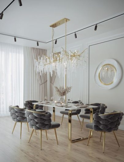 Любите роскошные интерьеры и являетесь обладателями большой гостиной? Тогда вы обязательно обратите на столовую группу Селена/Rendi. Шикарные стулья с металлическим основанием в золотом цвете с объёмной мягкой спинкой и роскошный керамический стол для большой семьи сделают интерьер модным, стильным.