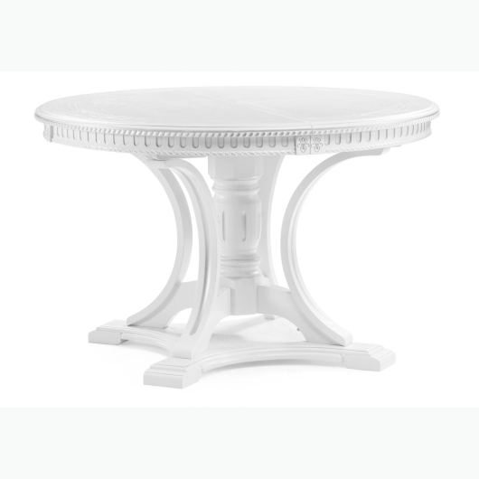Деревянный стол Нозеан громоздкий и большой, круглой формы станет любимым местом в большой столовой всей семьи. Устойчивый каркас и массивные ноги хорошо поддерживают раздвижную столешницу, на которой можно разместить большое количество вкусных блюд и пригласить за стол всех близких людей и дорогих гостей. Край каркаса и ноги украшены резьбой и патиной. Деревянный стол Нозеан сделает праздничный день приятным и радостным. -