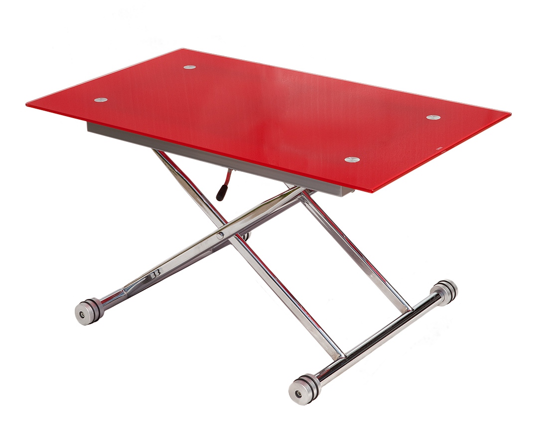 Обеденный стол-трансформер ТВ 010 имеет прямоугольную столешницу из стекла красного цвета. При помочи рычага, Вы сможете регулировать высоту стола. Такой является весьма удобным и практичным в использовании - в любой момент у Вас будет возможность спрятать стол.