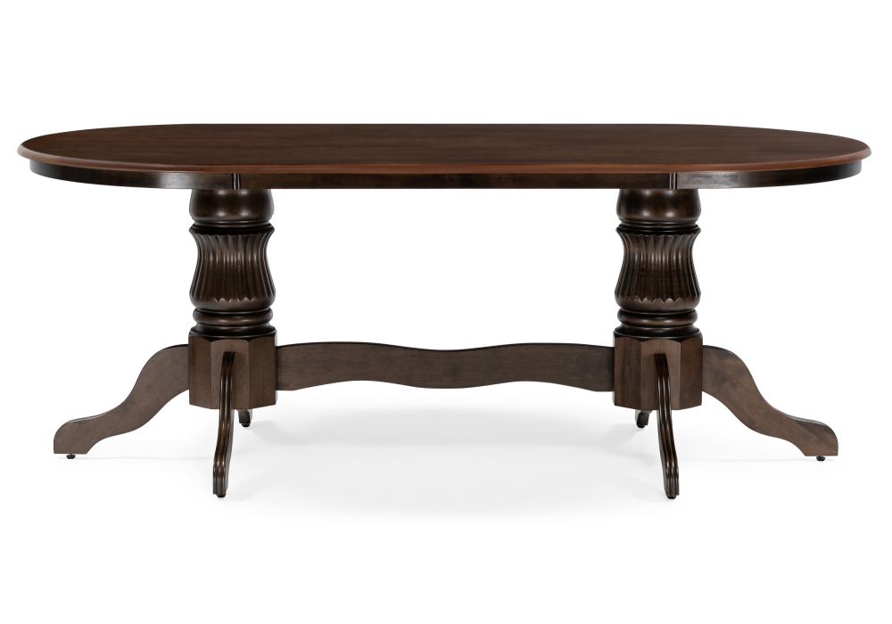 Стол обеденный Felle выполнен в классическом стиле. Из натурального массива Гевеи. Особый шарм модели придают резные ножки и массивная столешница. -