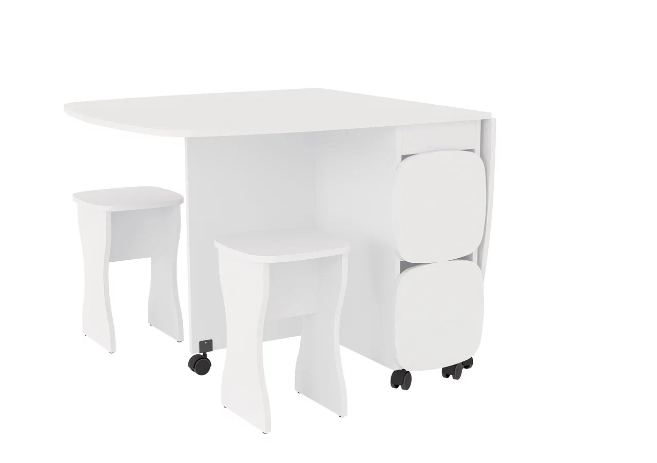Стол книжка с табуретами 1-6701 идеальная модель для небольшой кухни. За такую компановку фабрике аплодисменты. Никакого лишнего пространства. Всё максимально удобно. А раскладной стол, позволит собраться большой компании.