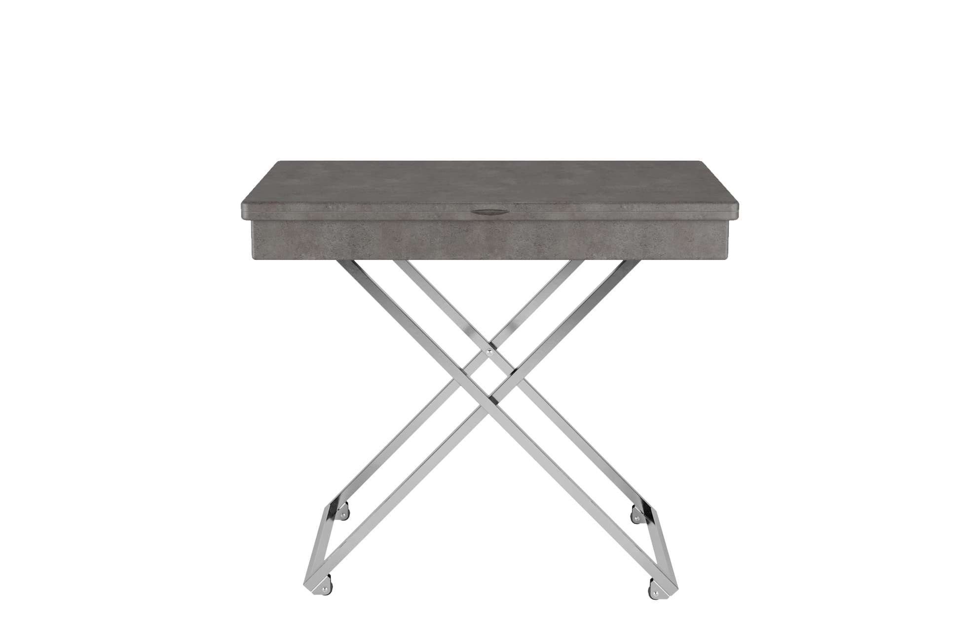 Стол универсальный трансформируемый Андрэ Хром отлично впишется в интерьер как на кухне, так и в гостиной. Изделие является грамотным решением для размещения большого количества вещей при экономии пространства в помещении, так как он имеет раскладную конструкцию. Стол можно использовать и для приёма пищи, и для отдыха за прочтением книги с чашечкой кофе, и даже вместо обычной тумбы. Особенностью данного предмета мебели является его способность трансформироваться: за считанные секунды можно увеличить столешницу или поменять высоту. Размеры столешницы в сложенном состоянии 850х550 мм, в разложенном - 1102х850 мм. По высоте стол имеет два положения: 575 мм и 725 мм. Ножки стола выполнены из прочного металлического профиля, столешница- из ламинированного МДФ 16 мм, облицованного влагостойким декоративным покрытием. Стол на прорезиненных роликовых опорах, что без труда позволяет перемещать его в помещении, при этом не царапая и не повреждая напольное покрытие. Продукция поставляется в разобранном виде, упакованная в гофрокартон. В комплект входит вся необходимая фурнитура и удобная инструкция для сборки.