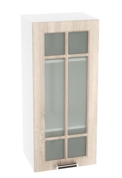 Шкаф 1-но дверный со стеклом №128 Прага ШВС 409Н станет основной составляющей рабочей зоны на вашей кухни. За распашной дверью со стеклом находится вместительное пространство с полками, созданными для размещения и хранения посуды, кухонной утвари, разнообразных круп, макарон и других сухих продуктов. Удивительно законченной мебель Прага делают гармонично сочетающиеся стилистические элементы: актуальные оттенки, тонкие строгие линии фасада, разнообразие ящиков и полок, стеклянные дверцы, так напоминающие окна, в которые хочется заглянуть. В этой кухне тесно переплелись красота и функциональность, традиции и современность.