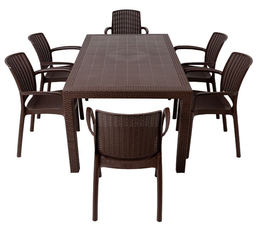 Без большого легкого стола не обойтись ни на одной даче. Модель из искусственного ротанга по достоинству оценят любители практичной и стильной мебели. Стол имеет просторную столешницу и вместит до 6 человек одновременно: это идеальное решение для организации обеденной зоны в большой семье. Отсек по центру стола позволит Вам установить солнцезащитный зонт в дневное время. А небольшой вес - менять положение стола на участке или террасе. Благодаря особенностям материала и плетеной структуре не впитывает грязь и моется обычной водой.