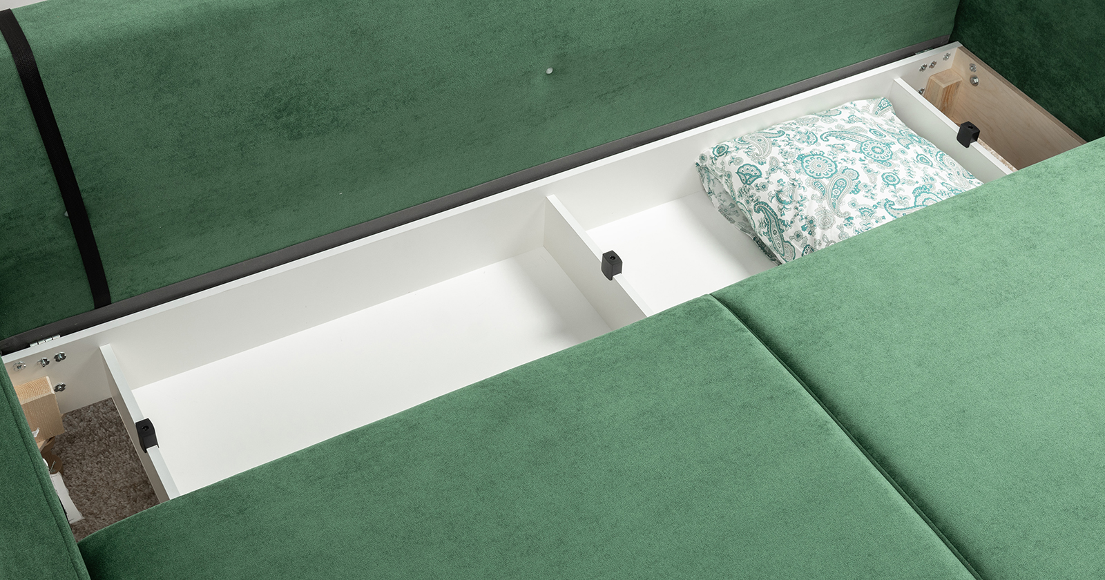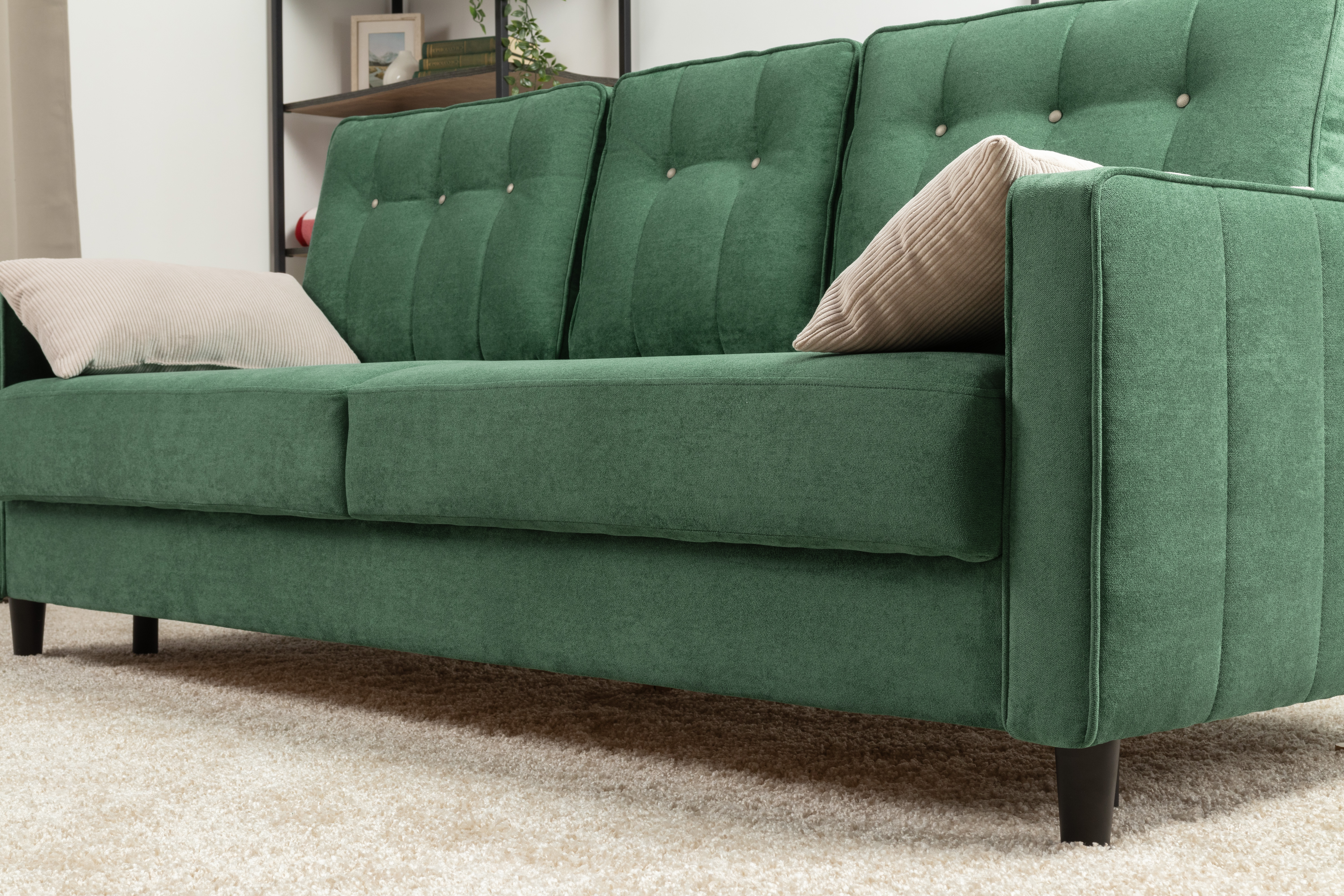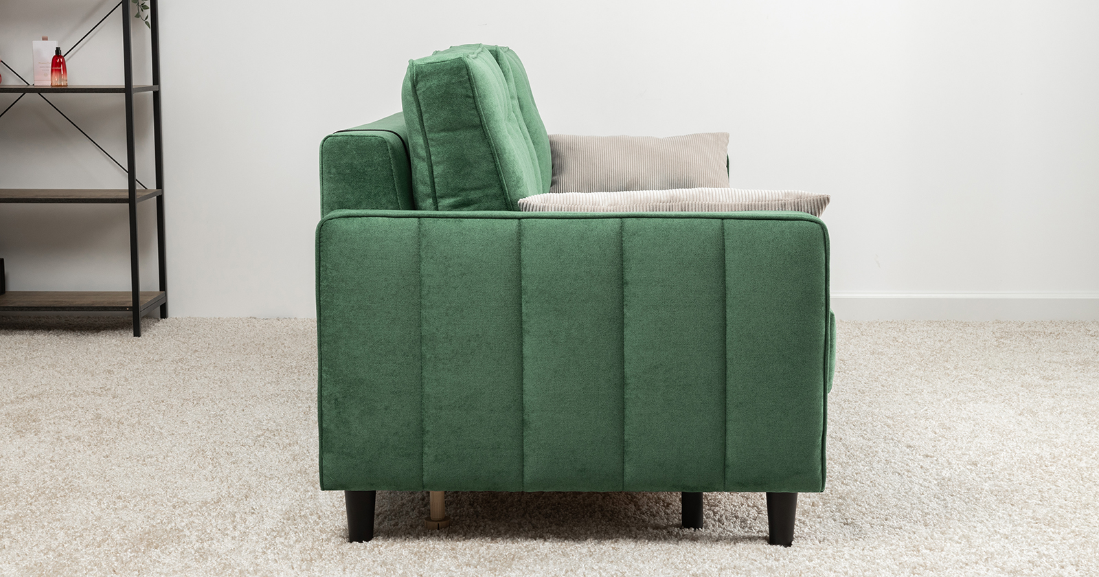 Представляем диван-кровать Арно. Объемные подушки дивана обеспечивают эргономичную посадку, а ровное спальное место – полноценный ночной отдых. Габариты сложенный: Ш2190 x Г980 x В880 мм разложенный: Д2190 x Ш1440 x В620 мм спальное место (Д x Ш, мм): 1930 x 1410 высота посадки (мм): 475 глубина сиденья (мм): 530 высота спинки (мм): 425 высота подлокотника от сиденья (мм): 170 максимально допустимая нагрузка: 80 кг на 1 сидячее место Механизм трансформации: Еврокнижка с механизмом раскладки «тик-так» Бельевой ящик есть с перегородкой по центру (2 отделения) размер отделения (Д x Ш, мм): 786 x 688 x 150 каркас:  фанера деревянный брус ДСП ДВП основание сиденья: ППУ на блоке плоских пружин "змейка" декоративные подушки, шт: 2 наполнитель подушек: крошка ППУ и полиэфирное волокно «шарики» материал опор: лакированное дерево цвет опор: черная эмаль высота опор (мм): 100 Декор Подушки имеют трапециевидную форму, с утолщением к низу для комфорта посадки. Кант по всему периметру подушек, декоративные утяжки металлическими пуговицами, вертикальная стежка.  Упаковка количество коробок, шт: 2 общий вес с упаковкой, кг: 82,7 Гарантия: 18 месяцев Объемные подушки дивана обеспечивают эргономичную посадку, а ровное спальное место – полноценный ночной отдых. Лаки (велюр) Состав: полиэстер (PES) 100% Количество циклов истирания: более 50 000 Основные преимущества: высокая износостойкость легкая чистка