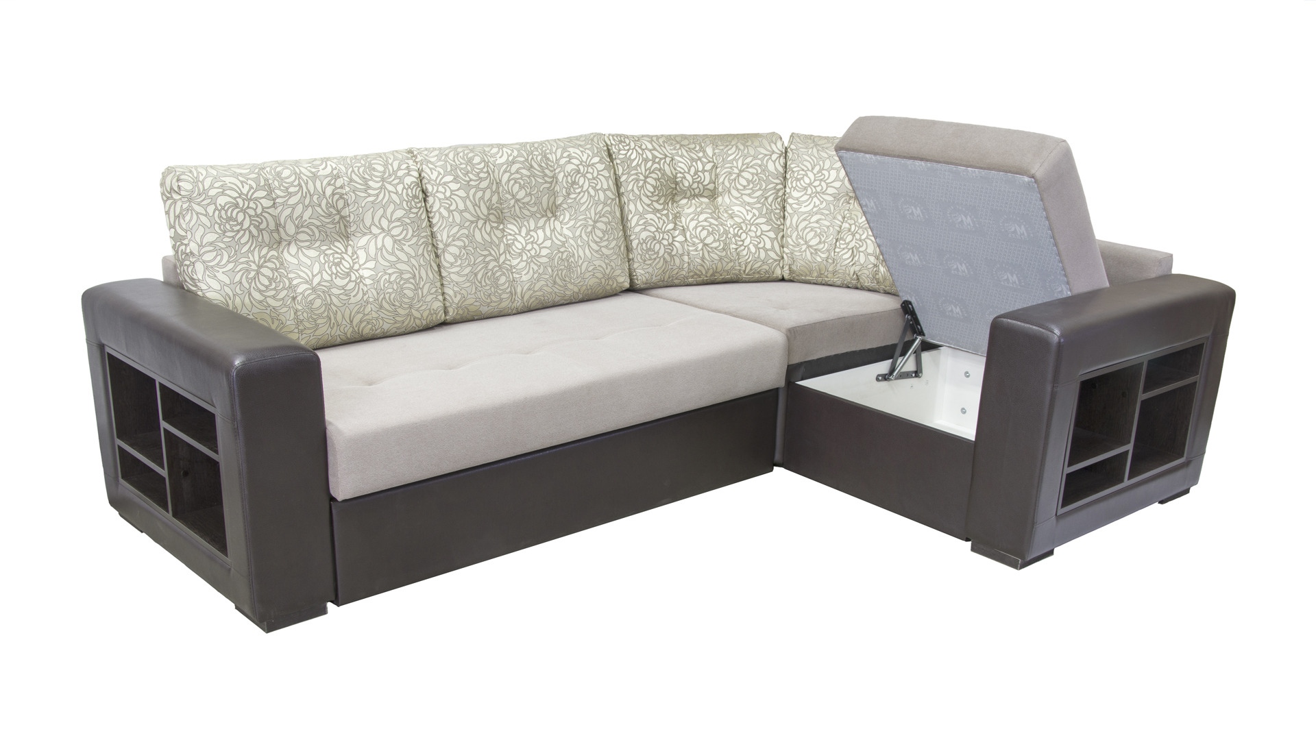 Диван угловой Хилтон выполнен в элегантном классическом стиле. По бокам, в подлокотниках, размещено множество полок для различных вещей - газет, журналов и пульта от телевизора. Благодаря механизму раскладки, с помощью нескольких движений, диван трансформируется в удобную мягкую кровать. Данная модель не только идеально впишется в любой интерьер комнаты, но и поразит вас своей практичностью, функциональностью и элегантностью.