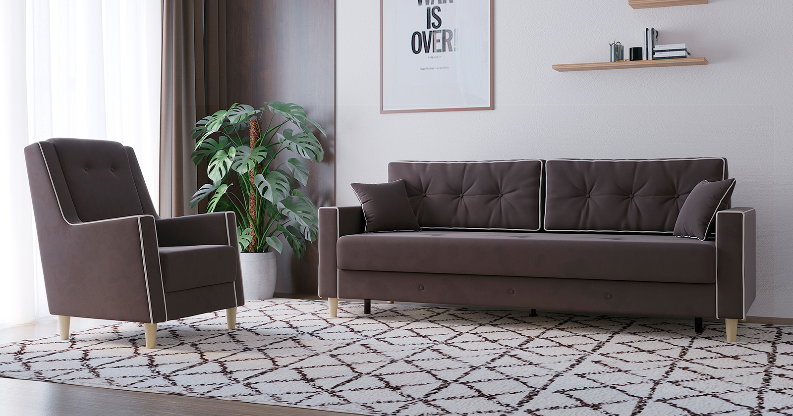 Диван-кровать Айрин прекрасно впишется в интерьер любой комнаты, а также привнесет долгожданный комфорт и тепло. Теперь вы сможете удобно расположиться на диване и читать увлекательную книгу, смотреть телевизор или заниматься другими делами. При необходимости и благодаря механизму раскладки, диван трансформируется в полноценную кровать с удобным спальным местом, которое позволит хорошенько выспаться и набраться сил.