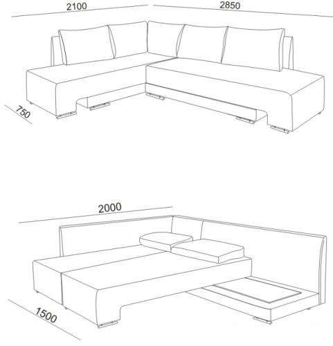 Ширина, мм 2850 Глубина, мм 2100 Высота, мм 750 ?Спальное местоШирина х Длина в мм1500 х 2000 Производитель Вариантов исполнения 1 -