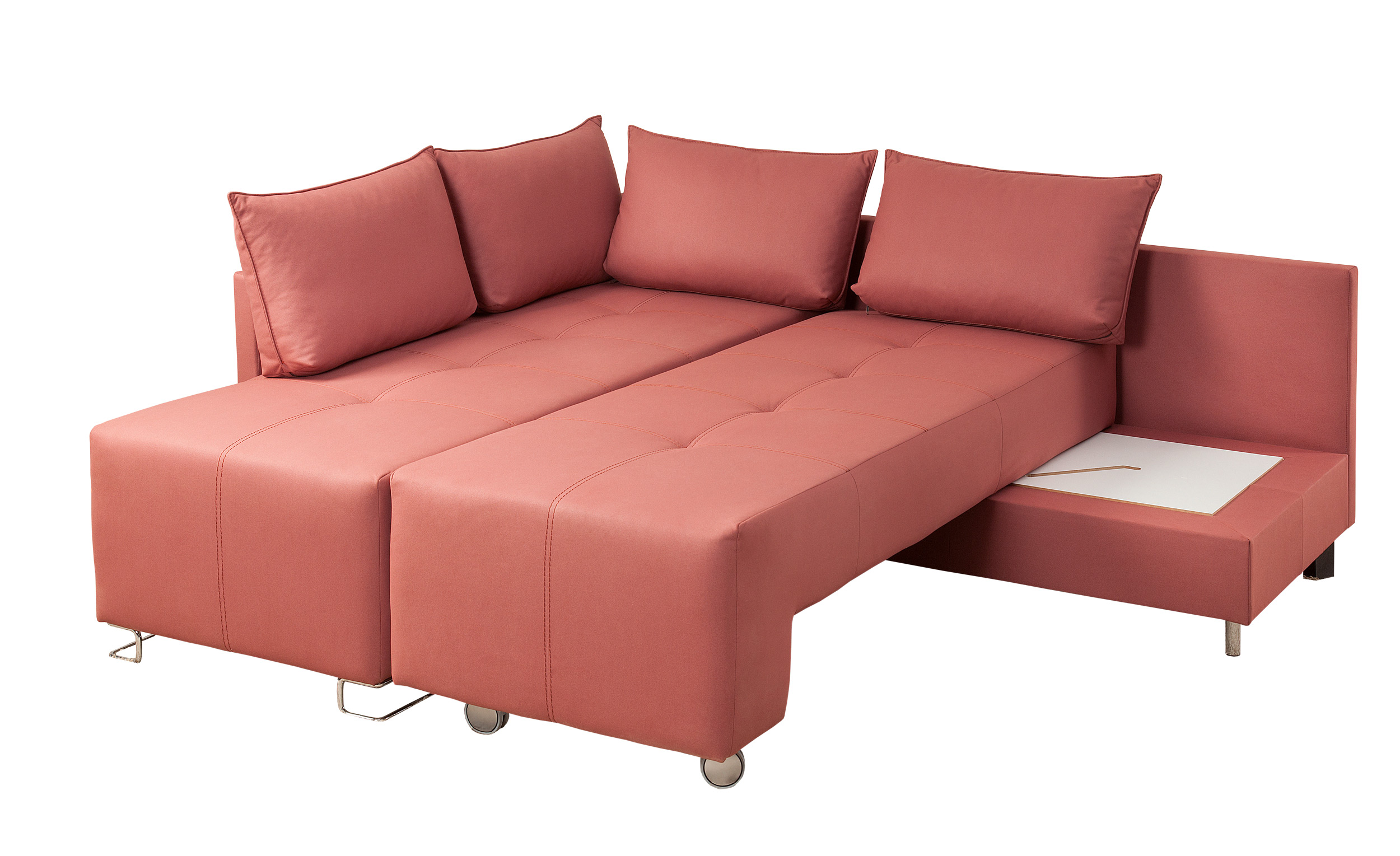 Диван угловой Премьер выполнена в достаточно строгом стиле, который впишется в любой интерьер. Благодаря механизму раскладки, при помощи нескольких движений, компактный диван трансформируется в удобную и мягкую кровать с широким спальным местом. Данная модель понравится людям, которые ценят практичность и удобство во всем.