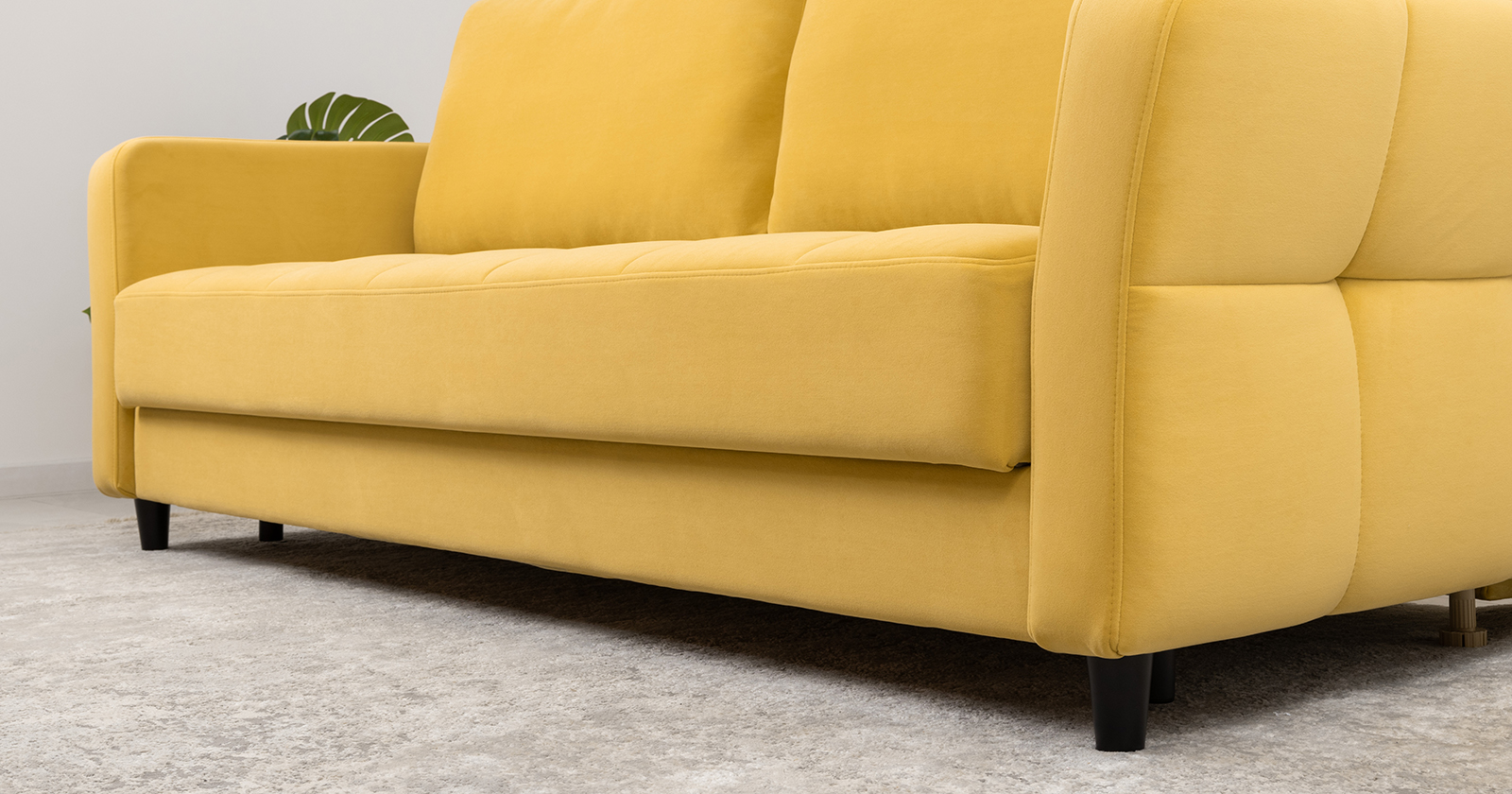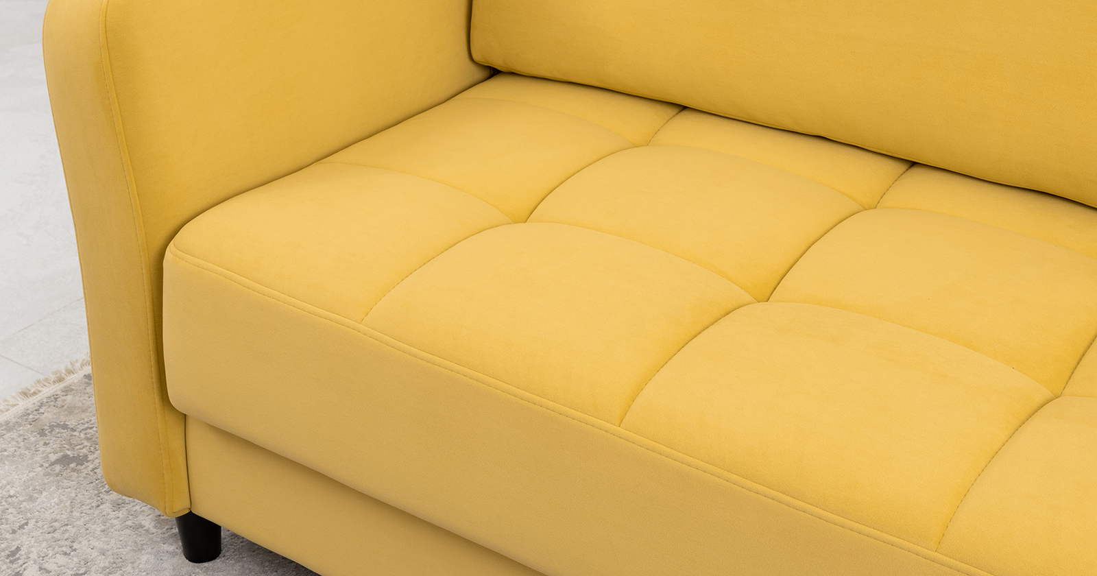 Ровная отстрочка по всему периметру сидения и стежка? создающая эффект пышности выделенных форм. Подлокотники прямые с изгибом в наружные стороны, с выраженной стежкой по лицевой стороне. Стежка на посадочной части дивана.