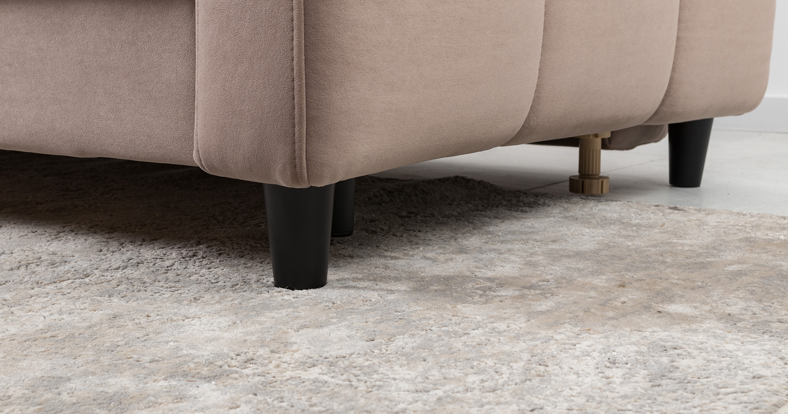 Ровная отстрочка по всему периметру сидения и стежка? создающая эффект пышности выделенных форм. Подлокотники прямые с изгибом в наружные стороны, с выраженной стежкой по лицевой стороне. Стежка на посадочной части дивана.