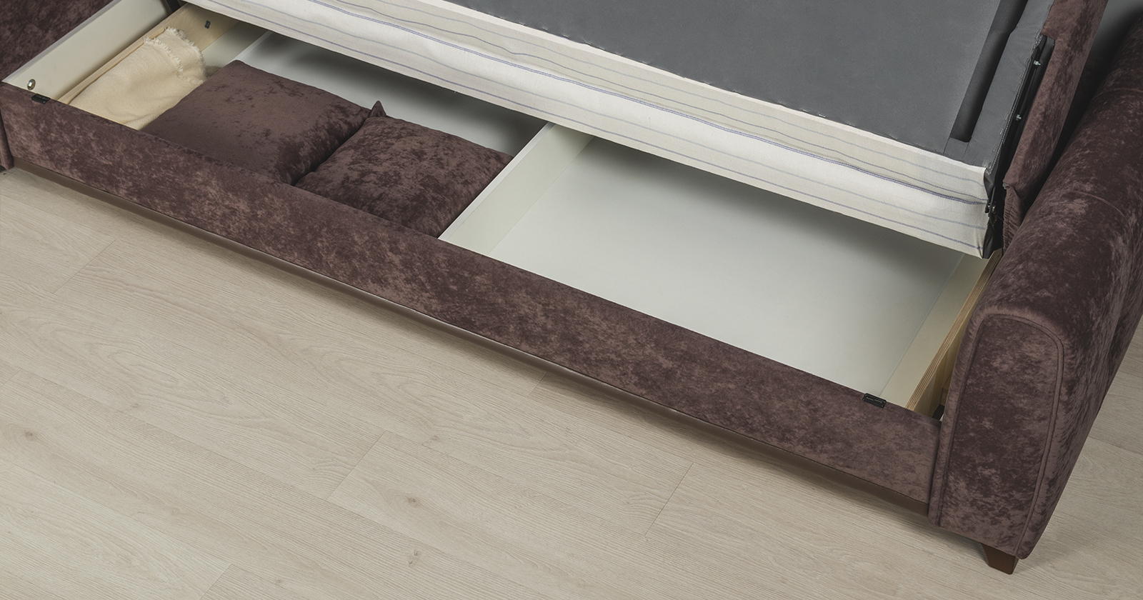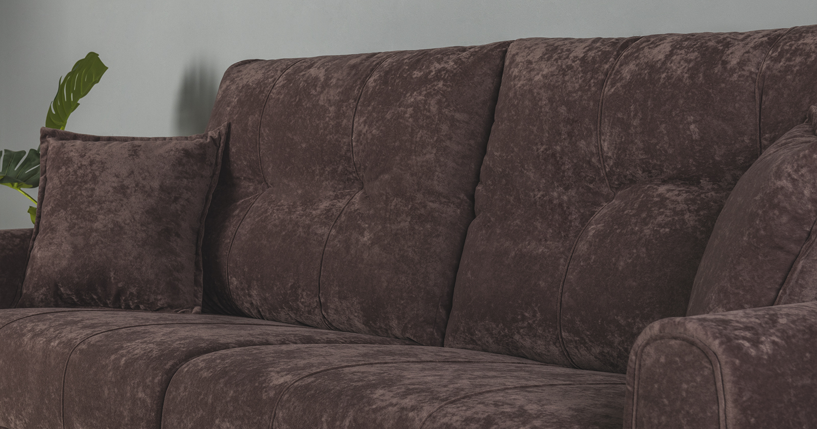 Выполнен в модном мягком велюре ROMANCE оригинальной фактуры. Ткань легко чистится, устойчива к зацепам, обладает повышенной износостойкостью. Благодаря особой технологии гладкого крашения Frozen Flower на поверхности ткани присутствует легкий краш–эффект, подчеркивающий невероятно мягкую фактуру ткани.