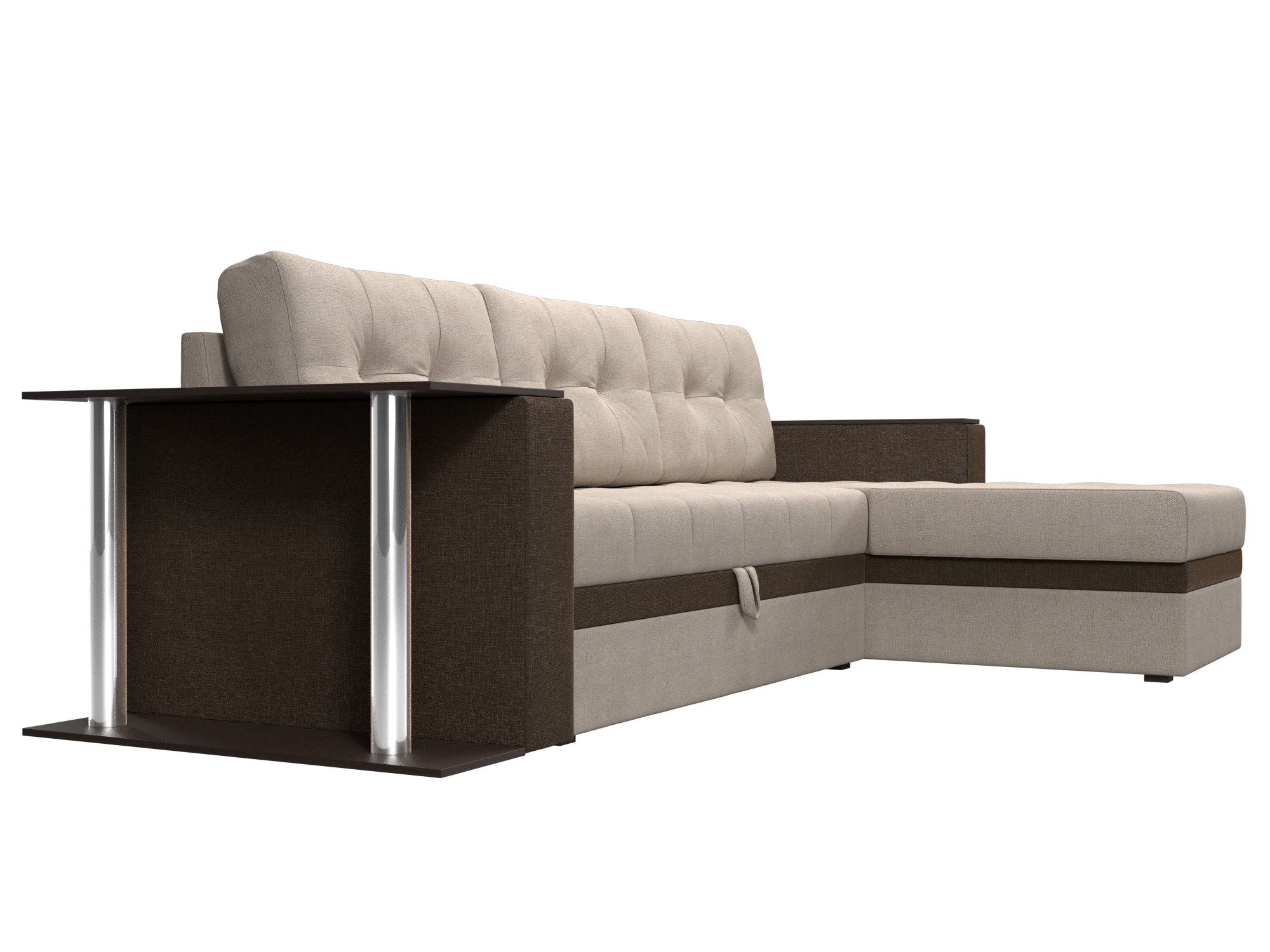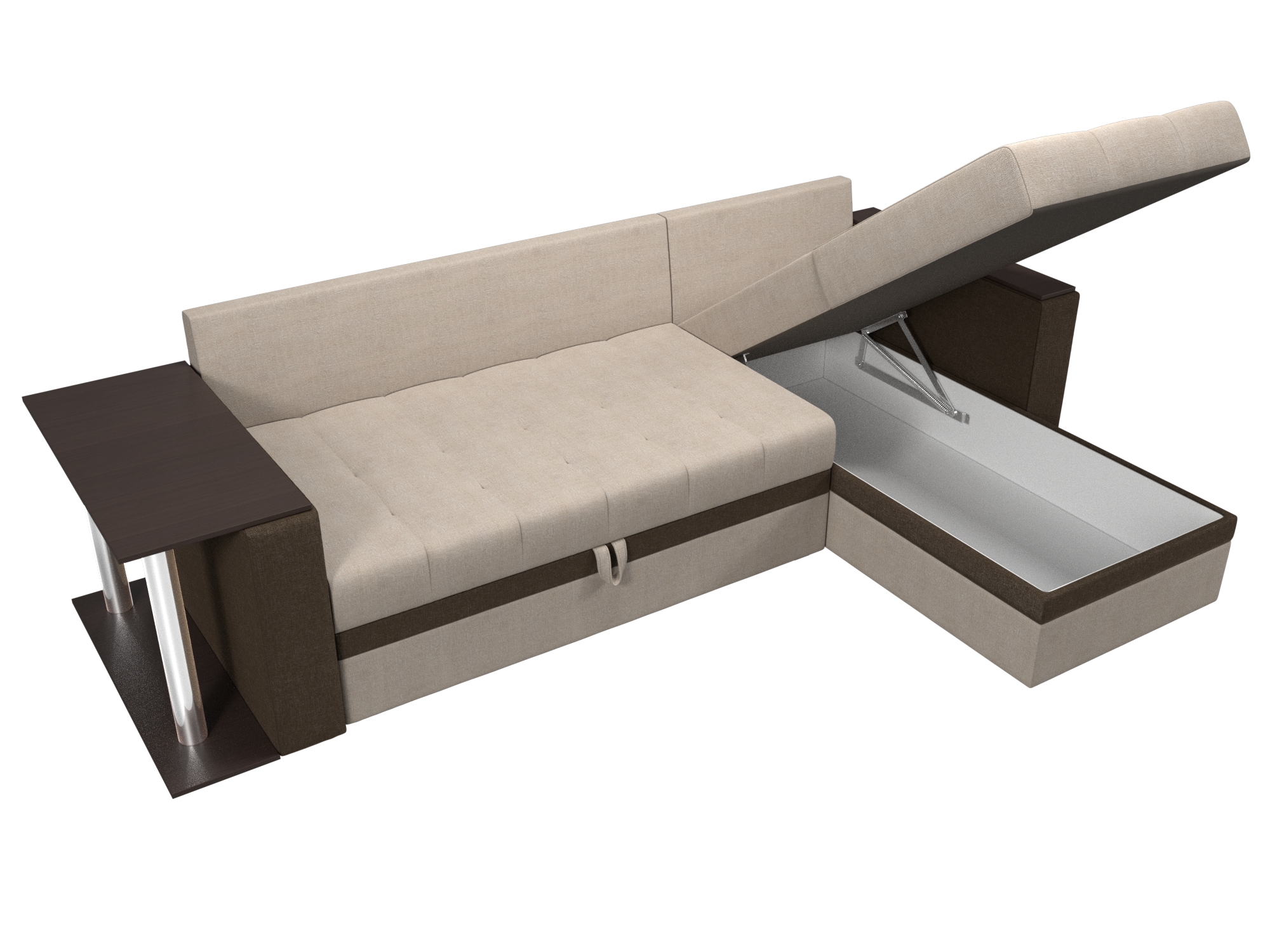 Угловой диван Атланта М прекрасно впишется в интерьер любой комнаты, а также привнесет долгожданный комфорт и тепло. Теперь вы сможете удобно расположиться на диване и читать увлекательную книгу, смотреть телевизор или разговаривать с близким человеком. Небольшой столик позволит разместить под рукой все необходимое: пульт, газету или журнал, блюдо с закусками и ароматный чай. При необходимости и благодаря механизму раскладки, вы получите достаточно широкое спальное место, которое позволит хорошенько выспаться и набраться сил. Вместительный ящик создан для бережного хранения постельного белья.