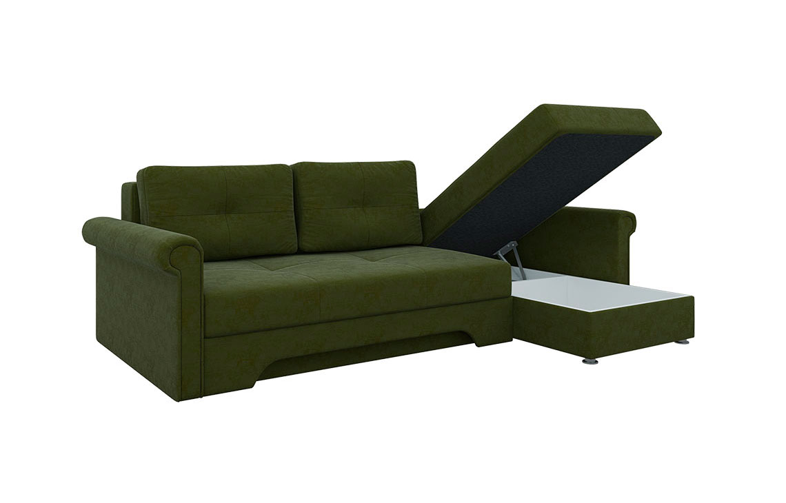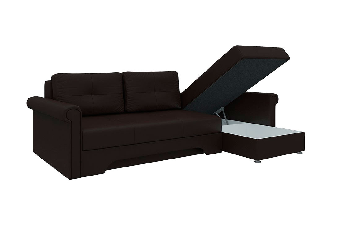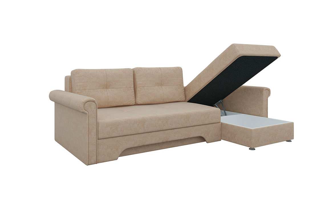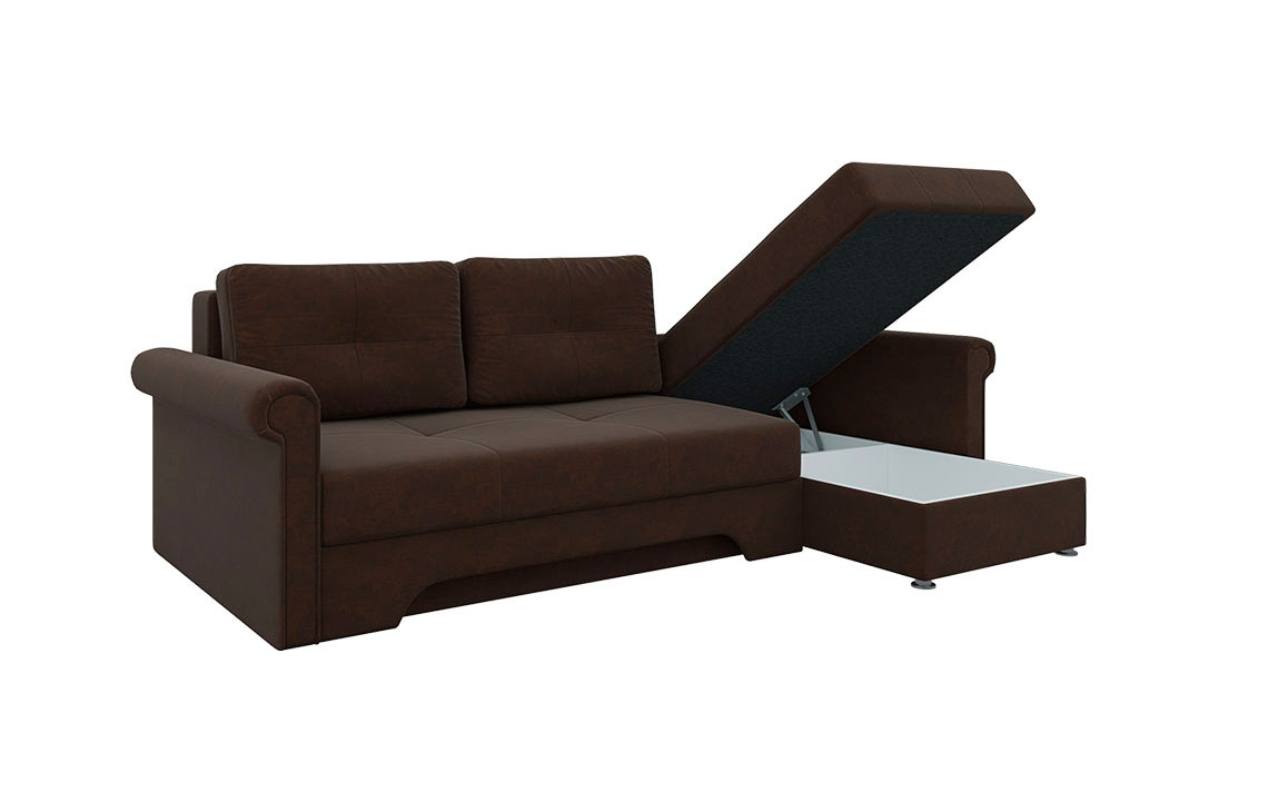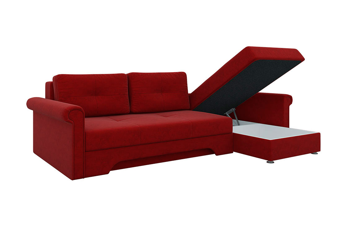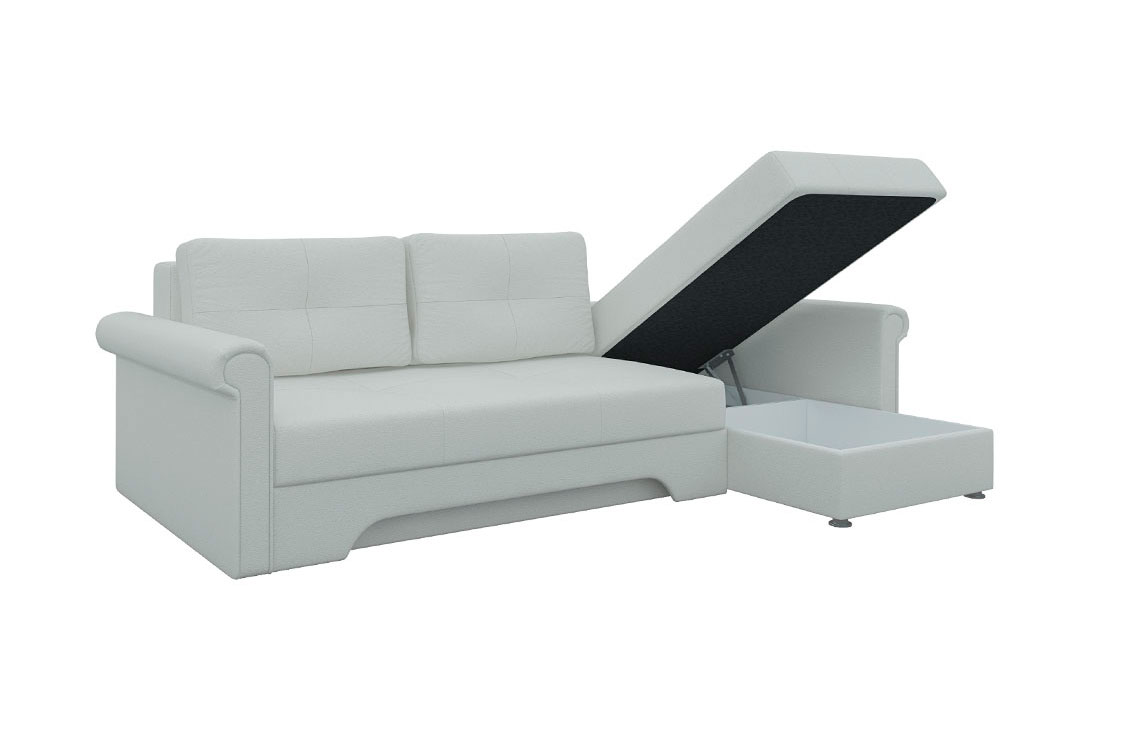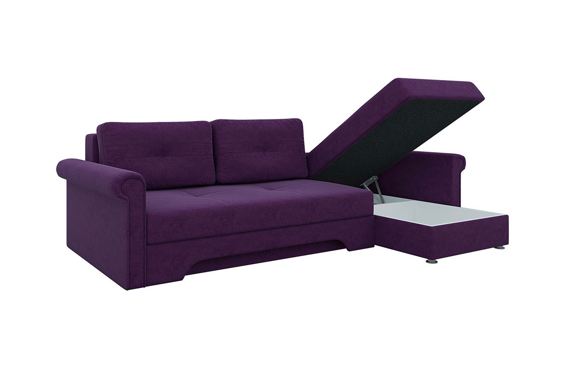 Угловой диван Гранд прекрасно впишется в интерьер любой комнаты, а также привнесет долгожданный комфорт и тепло. Теперь вы сможете удобно расположиться на диване и читать увлекательную книгу, смотреть телевизор или разговаривать с близким человеком. При необходимости и благодаря механизму раскладки еврокнижка, вы получите достаточно широкое спальное место, которое позволит хорошенько выспаться и набраться сил. Небольшой, но вместительный ящик создан для бережного хранения постельного белья.