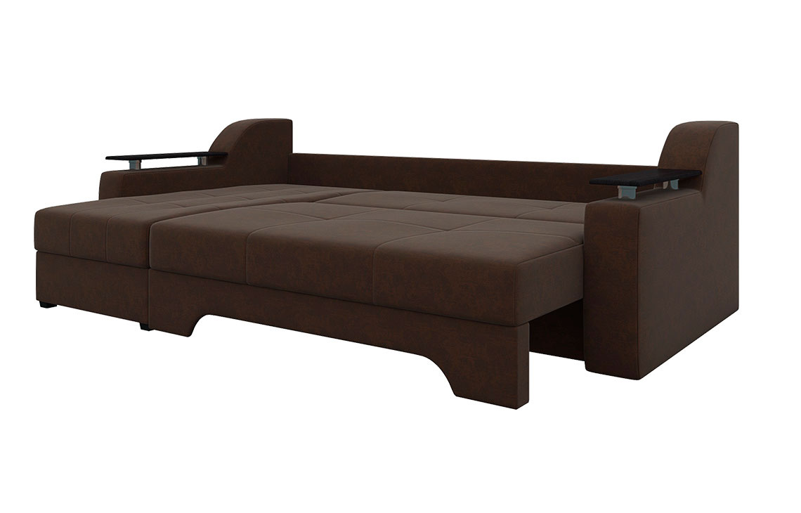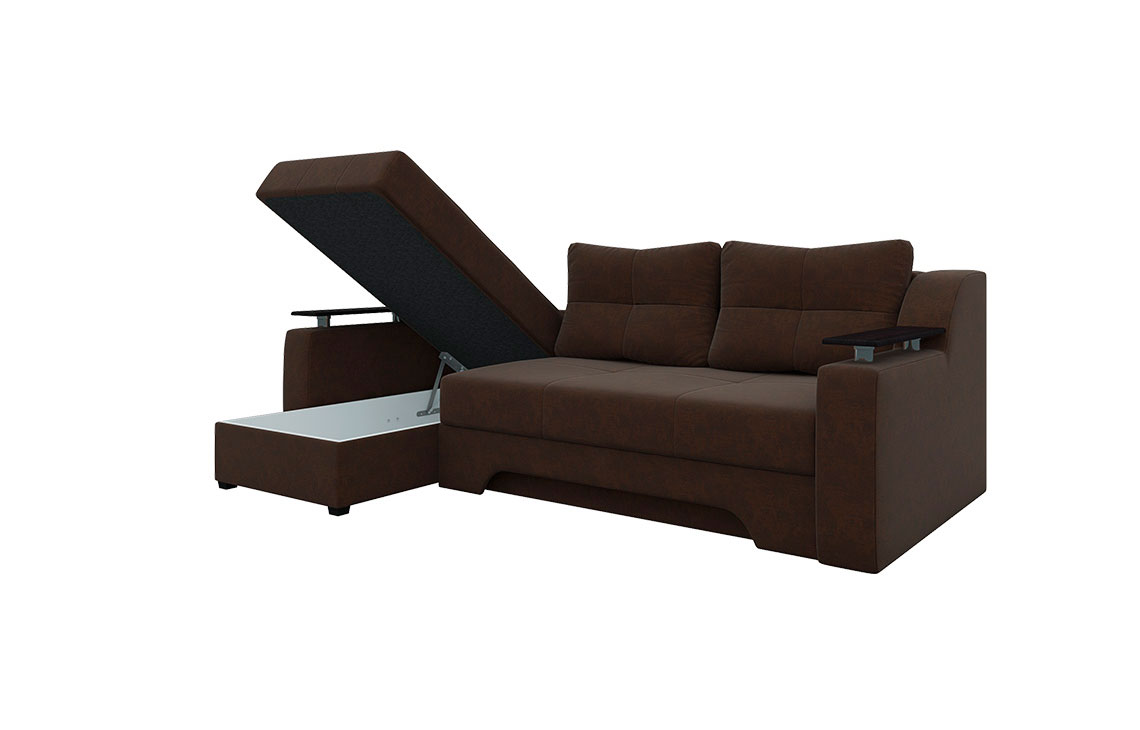 Угловой диван Сенатор прекрасно впишется в интерьер любой комнаты, а также привнесет долгожданный комфорт и тепло. Теперь вы сможете удобно расположиться на диване и читать увлекательную книгу, смотреть телевизор или разговаривать с близким человеком. При необходимости и благодаря простому механизму раскладки еврокнижка, вы получите достаточно широкое спальное место, которое позволит хорошенько выспаться и набраться сил. Достаточно вместительный ящик пригодится для бережного размещения постельного белья. Удобные подлокотники позволят разместить все необходимое около себя.