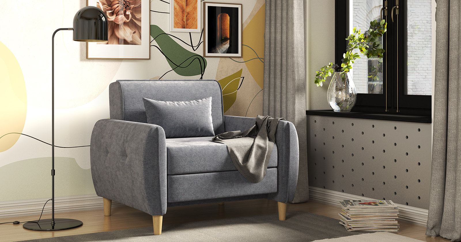 Удобное кресло днем - и комфортная 1-спальная кровать ночью. Удобная глубокая посадка, ровное спальное место.