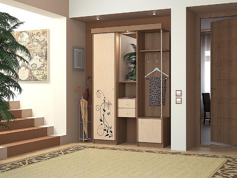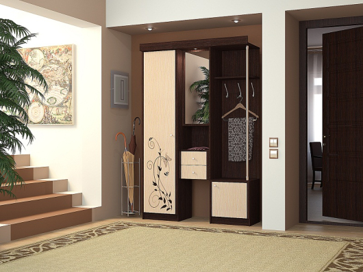 Прихожая Дина 1400 соединяет в себе все функционально необходимые в прихожей элементы: шкаф для одежды, зеркало, вешалка. Фасады данной прихожей Дина 1400 дополнены изящным растительным рисунком. Так же в прихожей Дина предусмотрена встраиваемая подсветка над зеркалом.