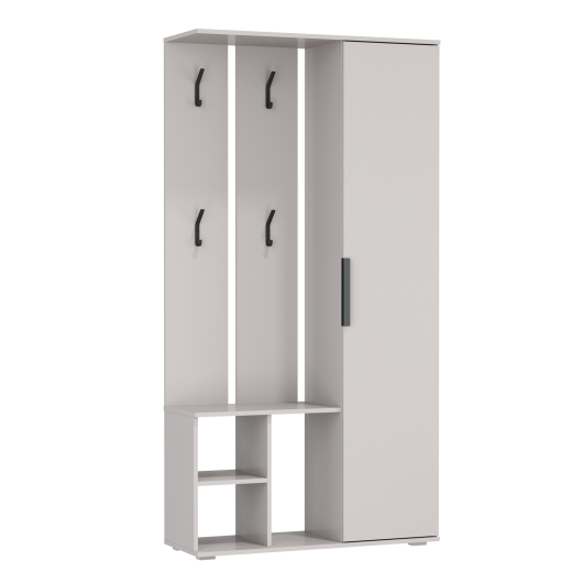 Прихожая Кармен-1 красива и компакта, сочетает в себе вместительный стеллаж с полками, просторную вешалку, крючки для зонтов, шапок, шарфов.