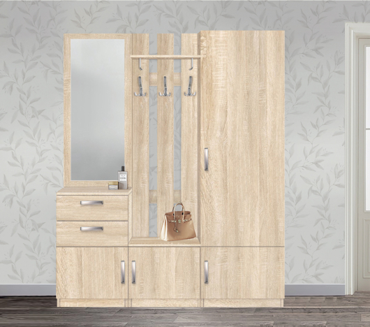 Прихожая Сонома 3 очень функциональна. Шкаф для верхней одежды, вешалка, сделают пространство свободным. Зеркало дополнит ваш интерьер и позволит посмотреть на себя перед выходом из дома.