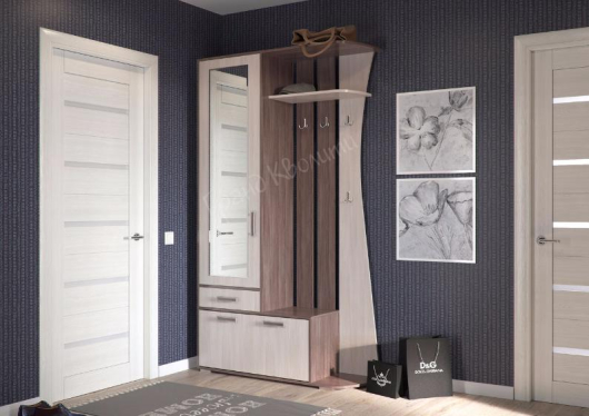 Прихожая Мокко 2-3424 удобна своим исполнением. В ней есть вешалка, шляпная полка, небольшой отдел со штангой, зеркало и обувница. Прихожая Мокко 2-3424 Может исполняться на левую и правую стороны, сборка универсальная.