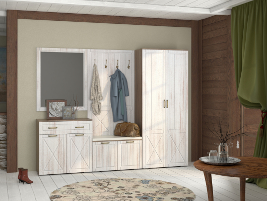 - шкаф 2-х створчатый 440 Афина - Ш901 x Г444 х В2150 мм.Прихожая Афина (вариант 1) поможет обустроить достаточно функциональное и теплое помещение, которое с порога будет приветствовать вас. Четыре крючка на вешалке и штанга в шкафу предназначены для размещения верхней одежды. За дверками тумб можно разместить обувь всей семьи или использовать пространство для хранения косметики по уходу за обувью, различных аксессуаров и других мелких предметов. Поверхность маленькой тумбы пригодится в качестве сиденья для комфортного надевания или снятия обуви. Мебель Афина, выполненная в стиле Provans, наполнит пространство уютом, а контрастный дуб винтаж с насыщенной древесной структурой придаст особый шарм.