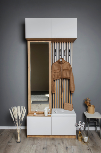 • Внутри антресоли и тумбы есть перегородки, которые делят проем пополам и являются дополнительным ребром жёсткости