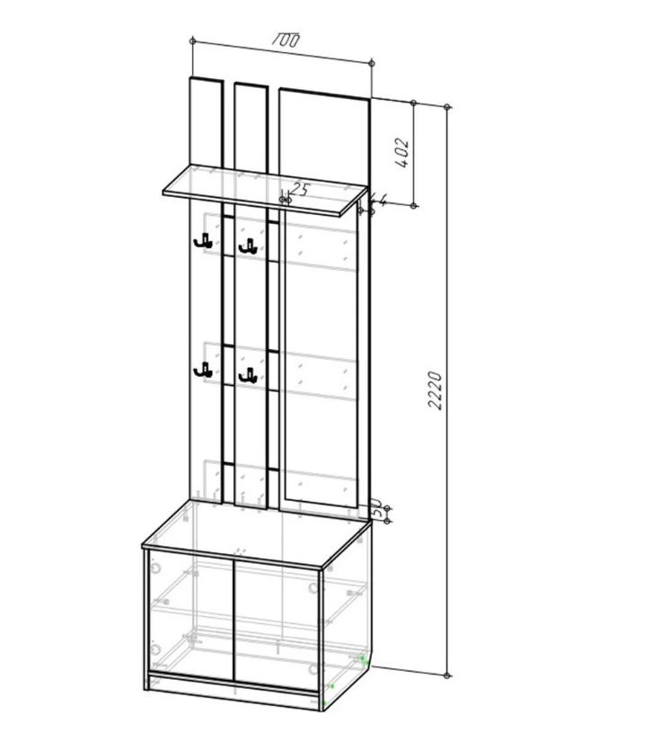 Вешалка с зеркалом Бруно Ш700 х Г520 х В2272 мм