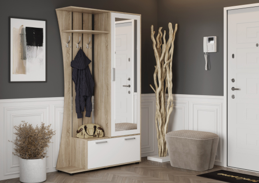 Прихожая Домино 4У практичное решение для современного интерьера Лёгкий дизайн придаст интерьеру воздушности. Сочетание цветов придаёт прихожей Домино гармоничный вид. -