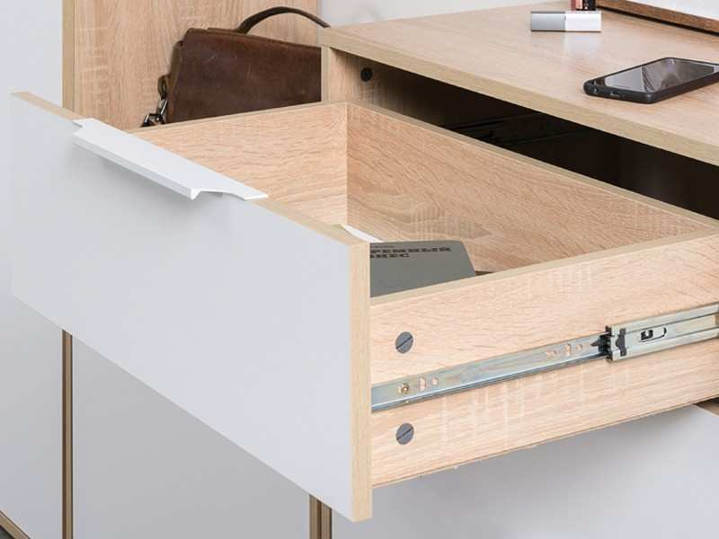 Прихожая Куба (вариант 9) поможет создать приветливую и благоприятную атмосферу, которая с порога будет окутывать теплом. Зеркало перед выходом из дома позволит убедится в том, что выглядите вы неотразимо. За зеркалом скрыты полки для размещения косметики, украшений и различных мелких предметов. Тумбы под обувь помогут забыть о проблеме разбросанной обуви по всему коридору. Изделия оснащены отделениями со специальными отсеками для хранения обуви, а выдвижной ящик пригодится для различных аксессуаров, косметики для обуви и прочих мелких предметов. Мебель Куба - это любовь в каждой детали, которые отражают стиль минимализм. -
