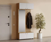 Прихожая Милан, оформленная в древесном цвете в сочетании с белым, создаст уютную и стильную атмосферу. Такое сочетание цвета создаст гармоничное и стильное пространство, которое будет радовать вас каждый день. -