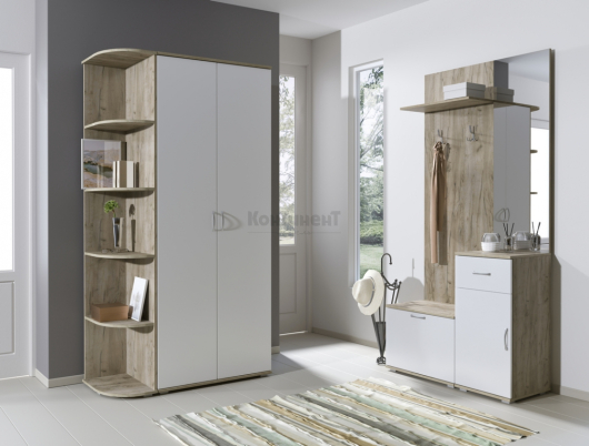 - стеллаж угловой Сити СТ-01 - Ш300 х Г500 х В2100 мм.Прихожая Сити 2 поможет функционально и со вкусом обустроить приветливую прихожую, которая с порога будет окунать в уютную домашнюю атмосферу. Два крючка на вешалке предназначены для аккуратного размещения верхней одежды, зонтов и шарфов, а антресольная полка создана для аккуратного хранения головных уборов. Две тумбы с дверцами пригодятся для размещения обуви всей семьи. Зеркало поможет подобрать удачный аксессуар, а также перед выходом из дома убедит вас в том, что выглядите вы неотразимо. За распашными дверьми 2-х дверного шкафа находится широкая штанга для вешалок-плечиков, а антресольная полка пригодится для размещения сложенной одежды и других предметов гардероба. Стеллаж предоставит дополнительное место для аккуратного хранения предметов, которые хочется видеть каждый день. Мебель Сити создана для быстрых, динамичных и современных.
