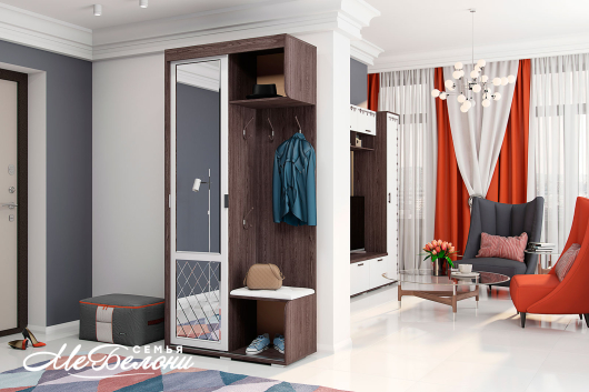 Прихожая Варда придаст помещению некую легкость и изящество. Переступая порог квартиры и попадая в прихожую, вы и ваши гости будете чувствовать себя комфортно. Выдвижная штанга и три крючка предоставят достаточно места для аккуратного размещения верхней одежды. Антресольная полка создана для хранения головных уборов. Мягкое сиденье пригодится во время надевания и снятия обуви, а тумба под ним - для обуви. Зеркало пригодится во время подбора удачных аксессуаров и перед выходом из дома убедит вас в том, что выглядите вы неотразимо. Варда - лаконичная прихожая выполнена в максимально функциональном конструктивном решении.