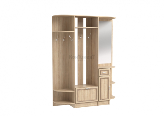 - секция с зеркалом и дверью Венера - Ш600 х Г425 х В2150 мм.Прихожая Венера 3М поможет функционально и со вкусом обустроить приветливую прихожую, которая с порога будет окунать в уютную домашнюю атмосферу. Крючки на вешалках предназначены для аккуратного размещения верхней одежды, зонтов и шарфов. Антресольные полки созданы для аккуратного хранения головных уборов. Нижнюю тумбу с дверцей можно использовать для размещения обуви. Зеркало поможет подобрать удачный аксессуар, а также перед выходом из дома позволит убедится в вашей неотразимости. Возле зеркала находится один крючок для одежды. Мебель Венера придаст индивидуальности прихожим.