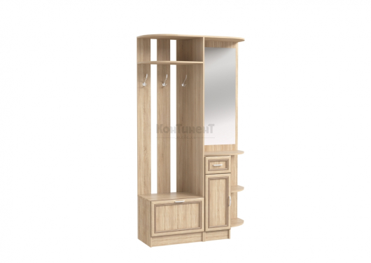 - секция с зеркалом и дверью Венера - Ш600 х Г425 х В2150 мм.Прихожая Венера 4М поможет функционально и со вкусом обустроить приветливую прихожую, которая с порога будет окунать в уютную домашнюю атмосферу. Крючки на вешалке предназначены для аккуратного размещения верхней одежды, зонтов и шарфов. Антресольная полка создана для аккуратного хранения головных уборов. Нижнюю тумбу с дверцей можно использовать для размещения обуви. Зеркало поможет подобрать удачный аксессуар, а также перед выходом из дома позволит убедится в вашей неотразимости. Возле зеркала находится один крючок для одежды. Мебель Венера придаст индивидуальности прихожим.