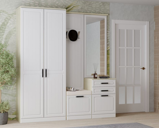 Прихожая Венеция 1 – это стильное и практичное решение, которое создает ощущение простора, света и чистоты. Белый цвет фасадов придает легкость и универсальность, позволяя гармонично вписать мебель в любой интерьер прихожей. МДФ обеспечивает долговечность и привлекательный внешний вид. -