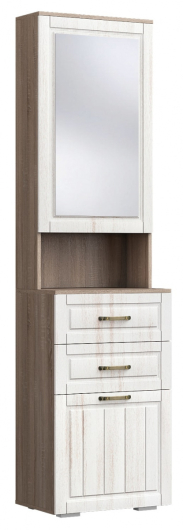 Тумба с зеркалом Афина станет отличным и практичным дополнением вашей прихожей. За нижней распашной дверцей находится вместительное пространство с полками, которые можно использовать для аккуратного размещения обуви всей семьи. Два выдвижных ящика и полки, скрытые за зеркалом, пригодятся для различной косметики для обуви и аксессуаров. Зеркало поможет во время подбора удачных аксессуаров. Мебель Афина, выполненная в стиле Provans, наполнит пространство уютом, а контрастный дуб винтаж с насыщенной древесной структурой придаст особый шарм.