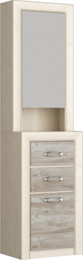 Тумба с зеркалом Мартина станет отличным и практичным дополнением вашей прихожей. За нижней распашной дверцей находится вместительное пространство с полками, которые можно использовать для аккуратного размещения обуви всей семьи. Два выдвижных ящика и полки, скрытые за зеркалом, пригодятся для различной косметики для обуви и аксессуаров. Зеркало поможет во время подбора удачных аксессуаров. Мебель Мартина отличается сочетанием светлых оттенков, изысканной фурнитурой, древесным декором фасадов, которое создаст неповторимую эстетику в вашем доме.